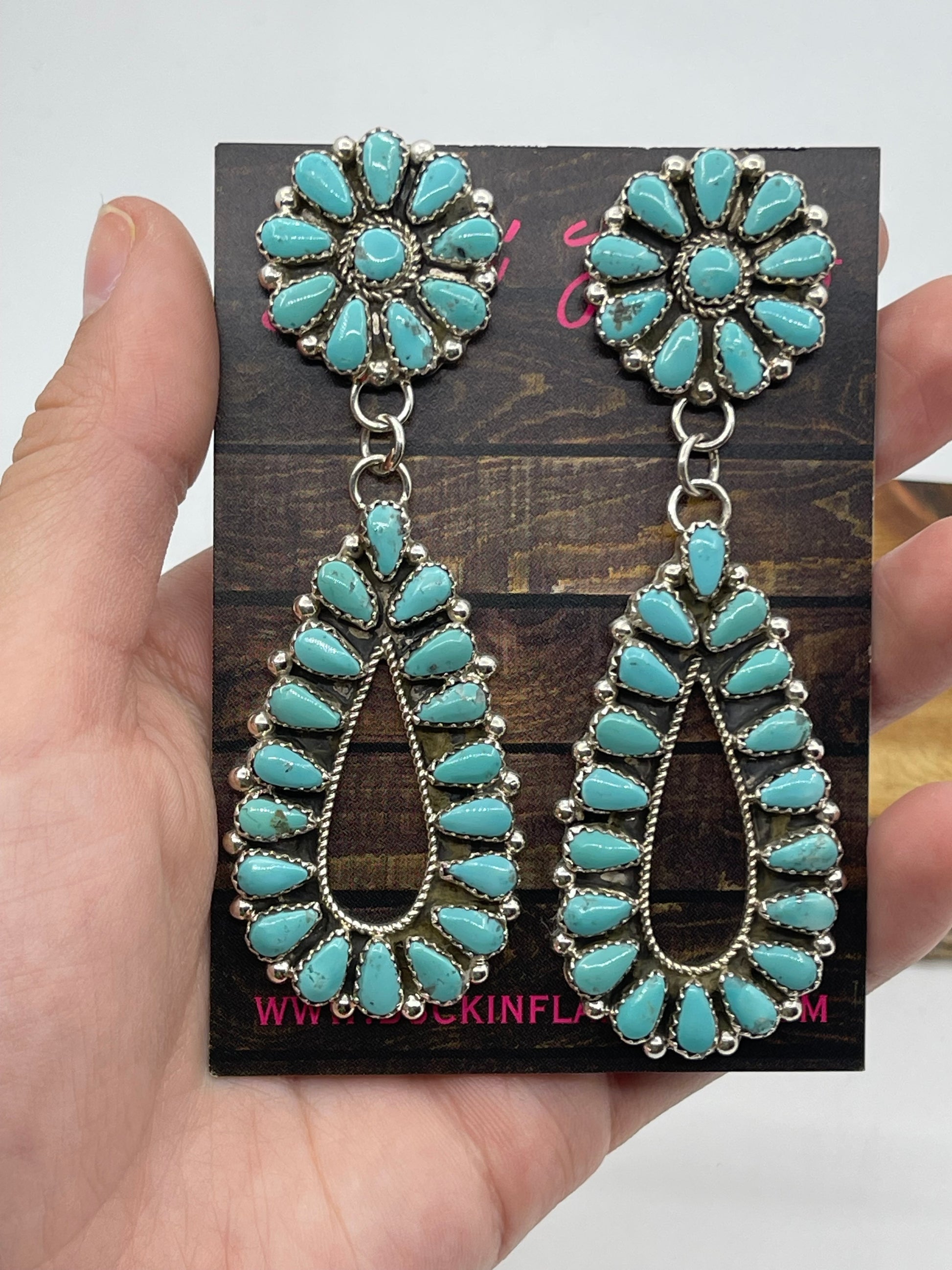 LOT 48 1/4 Turquoise Cluster Teardrop Post Dangle Earrings by Alicia Wilson, Navajo