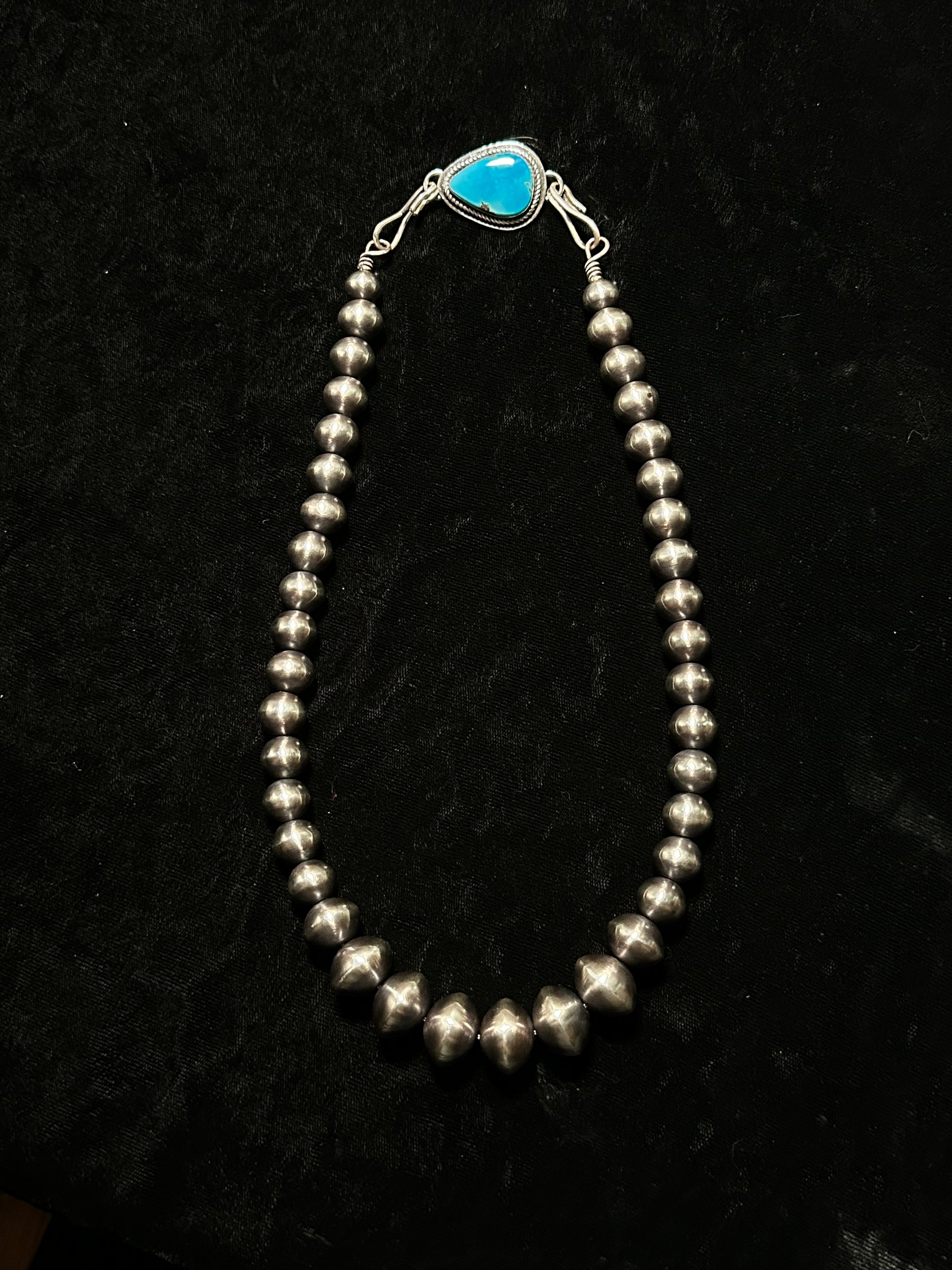 21” 17mm and 10mm Handmade Navajo Pearls and Kingman Turquoise Necklace By Tustin Daye, Navajo