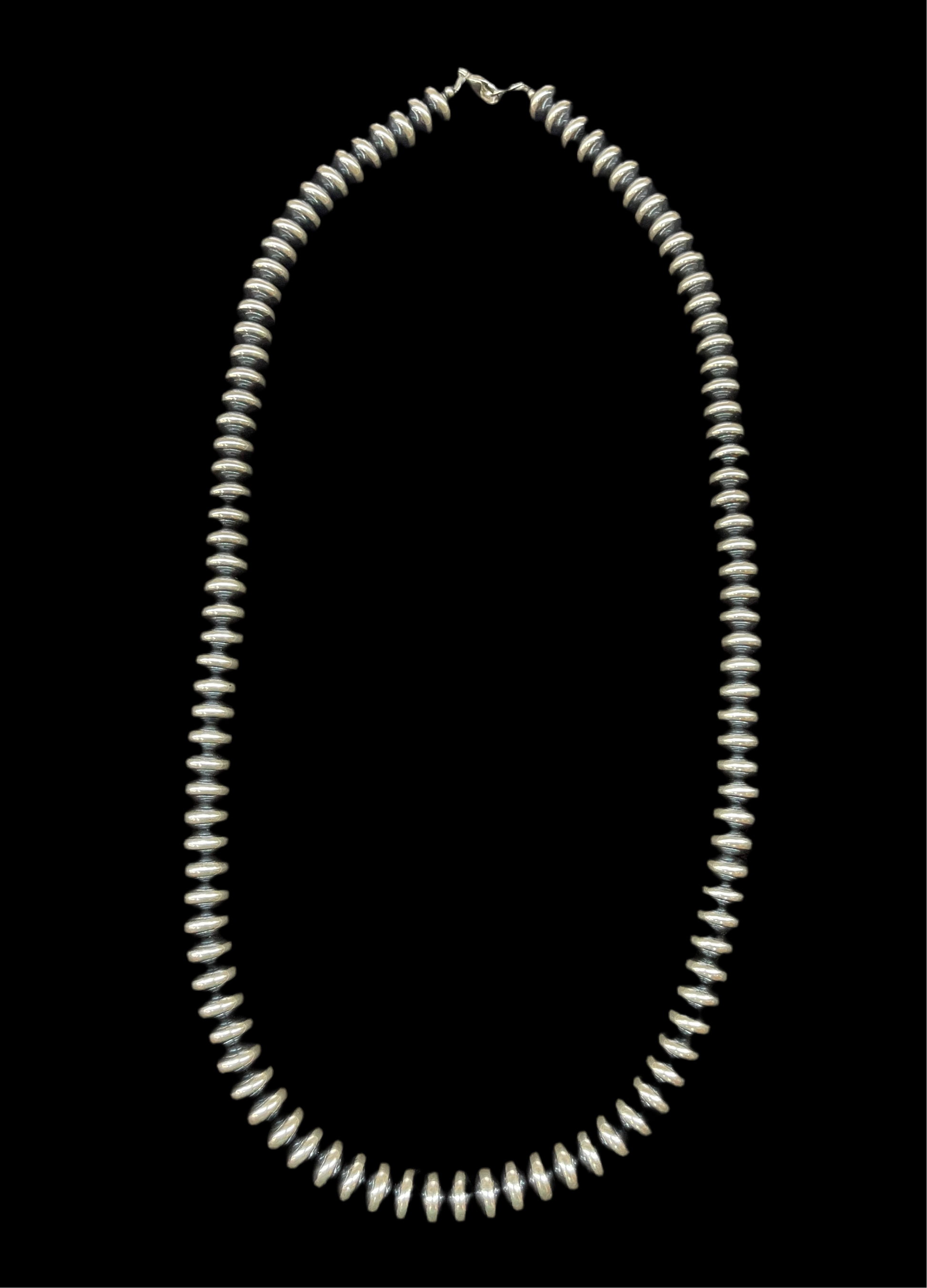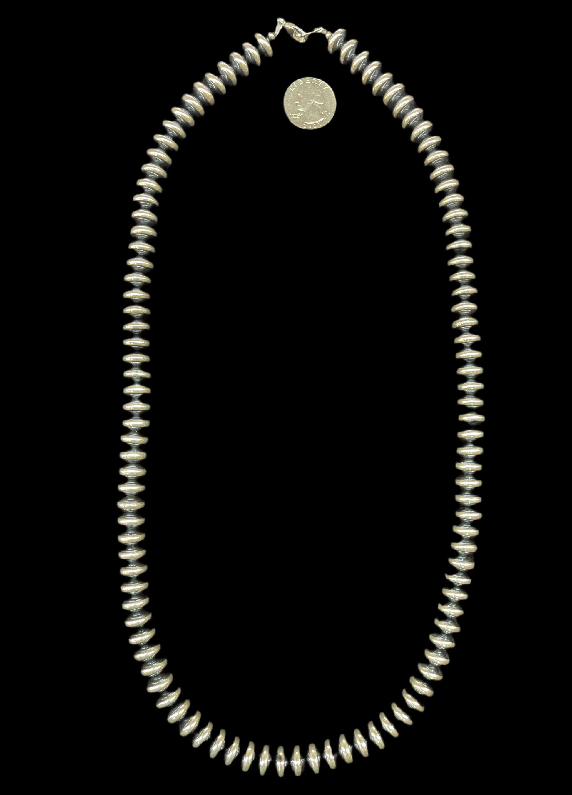 Crafted with a 30" strand of 12mm Roundelle Navajo Pearls, this product boasts expert craftsmanship and high-quality materials. Enjoy the timeless beauty and durability of these traditional Navajo pearls, perfect for any occasion.