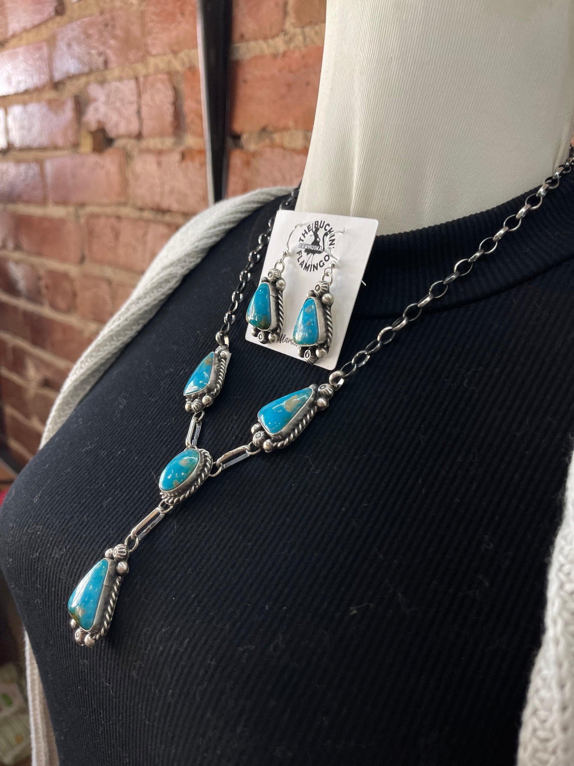 Blue Kingman Turquoise Lariat and Earring Set by Augustine Largo, Navajo