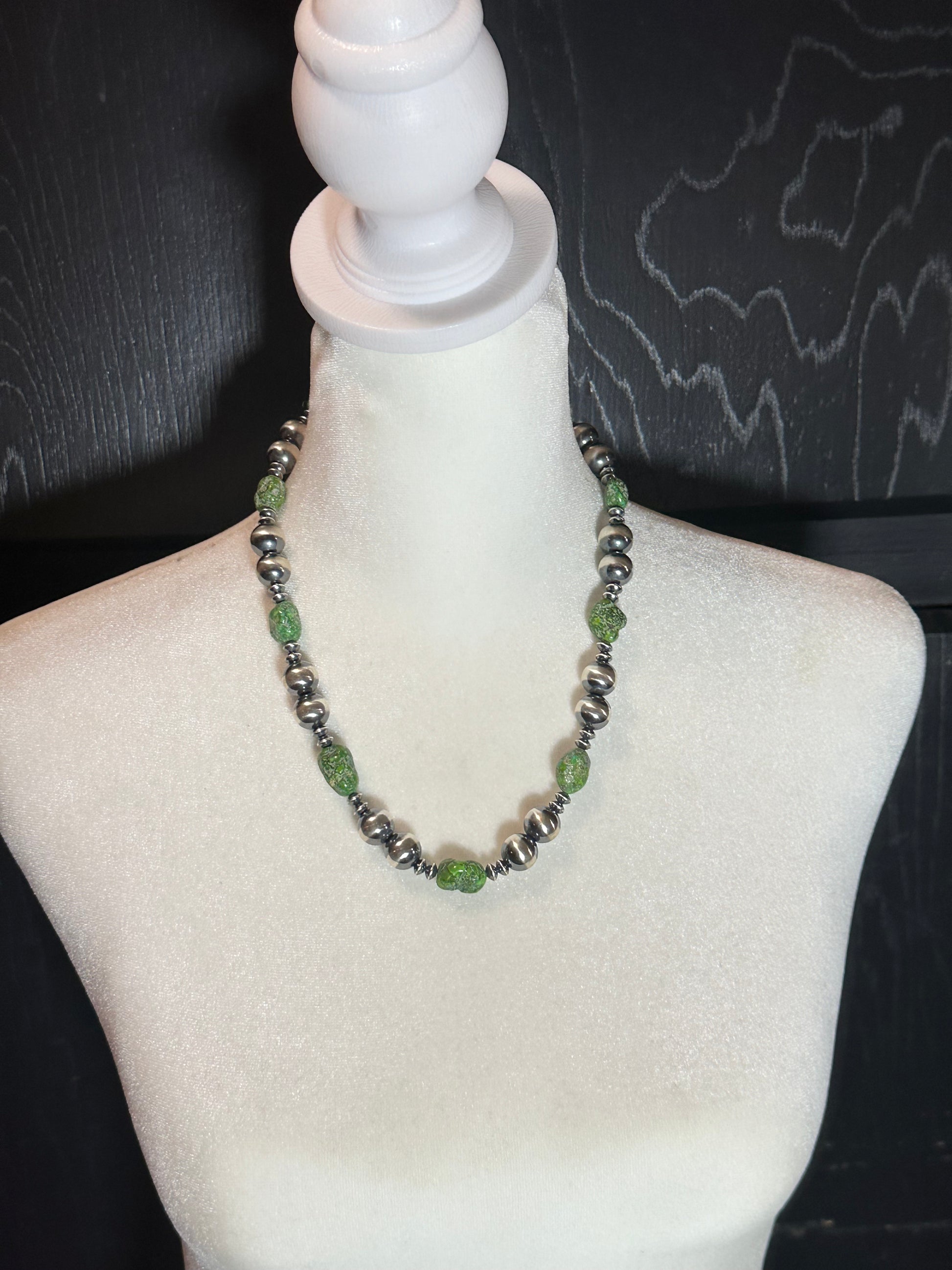 Elevate your style with our 20" 12mm Navajo Pearls necklace, featuring 5mm disk pearls and Sonoran Gold pieces. The perfect addition to any outfit, this unique necklace exudes elegance and adds a touch of sophistication to your look. Show off your individuality and make a statement with our stunning creation.
