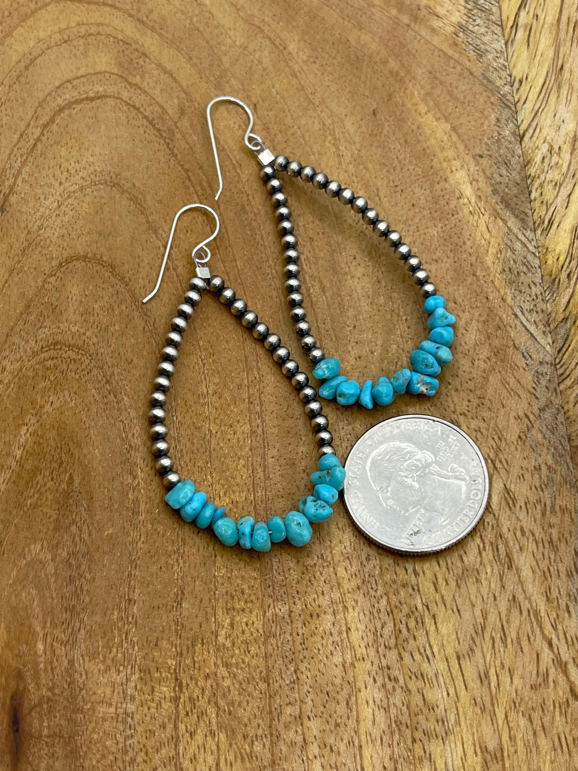 3mm Navajo Style Pearl Earrings With Turquoise Chunks
