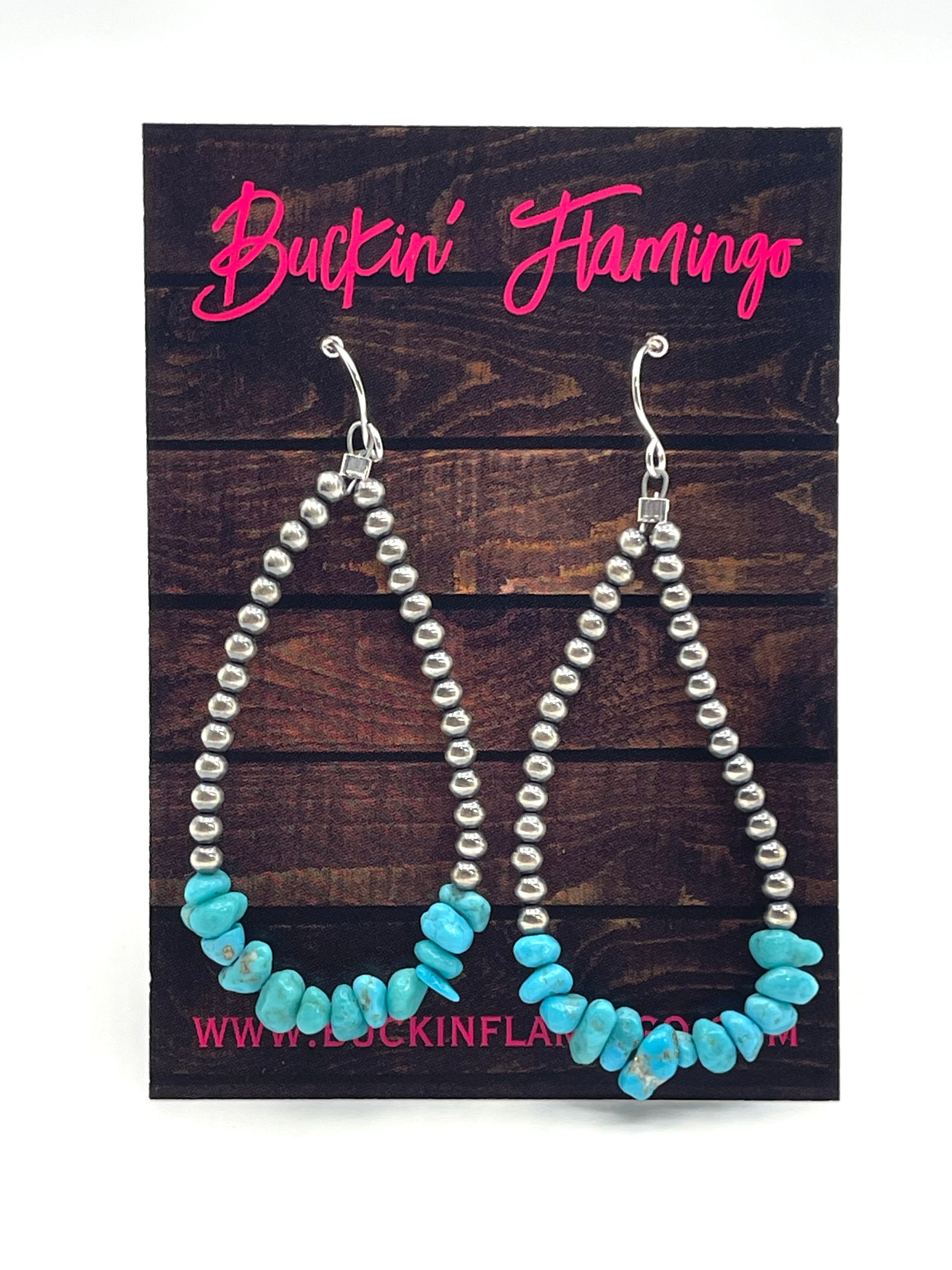 3mm Navajo Style Pearl Earrings with Turquoise Chunks Handcrafted sterling silver earrings that blend timeless Navajo design with natural beauty. Delicate 3mm pearls pair perfectly with authentic turquoise chunks, creating an understated yet striking look. Ideal for everyday wear or special occasions, these pieces celebrate traditional craftsmanship while offering versatile elegance. The combination of lustrous pearls and vibrant turquoise makes them a standout addition to any jewelry collection.