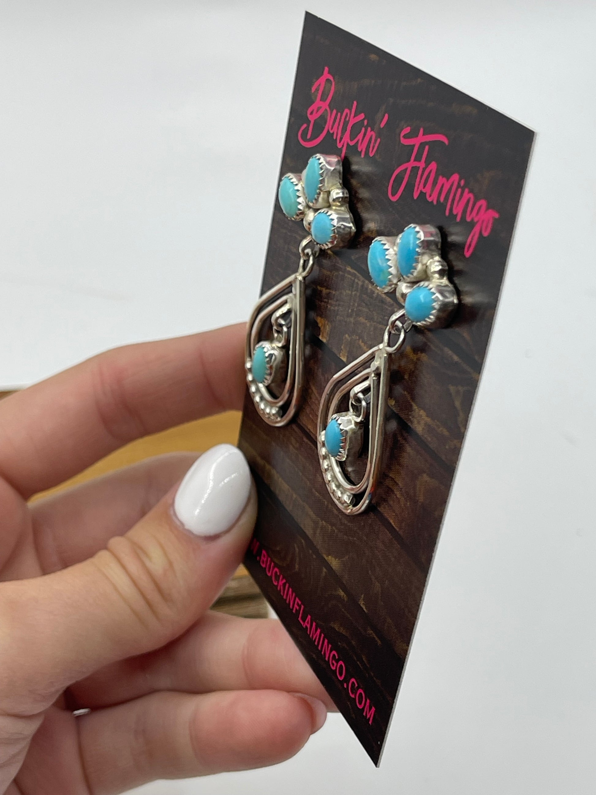 Turquoise Cluster Teardrop Post Dangle Earrings by Anna Spencer, Navajo