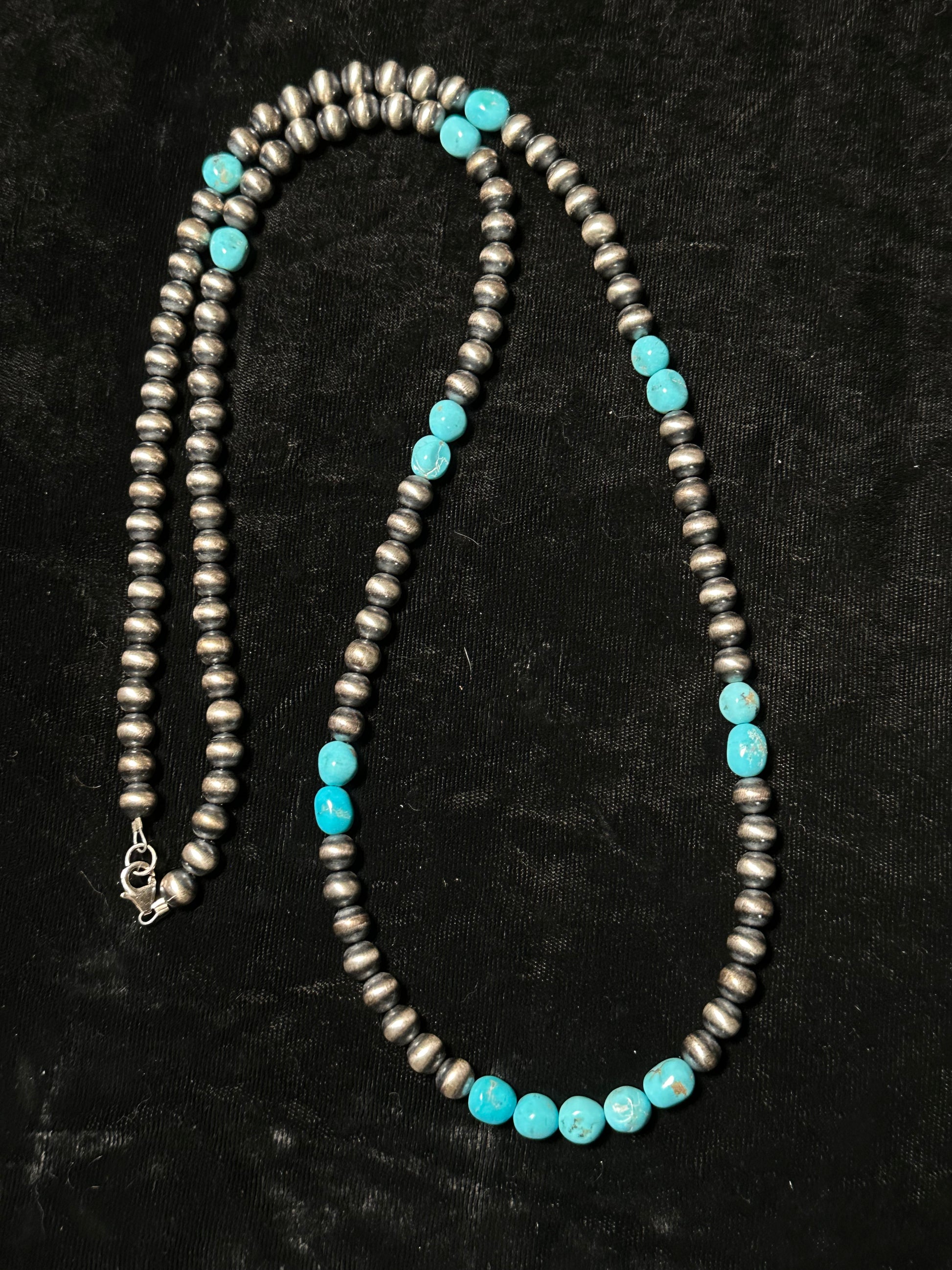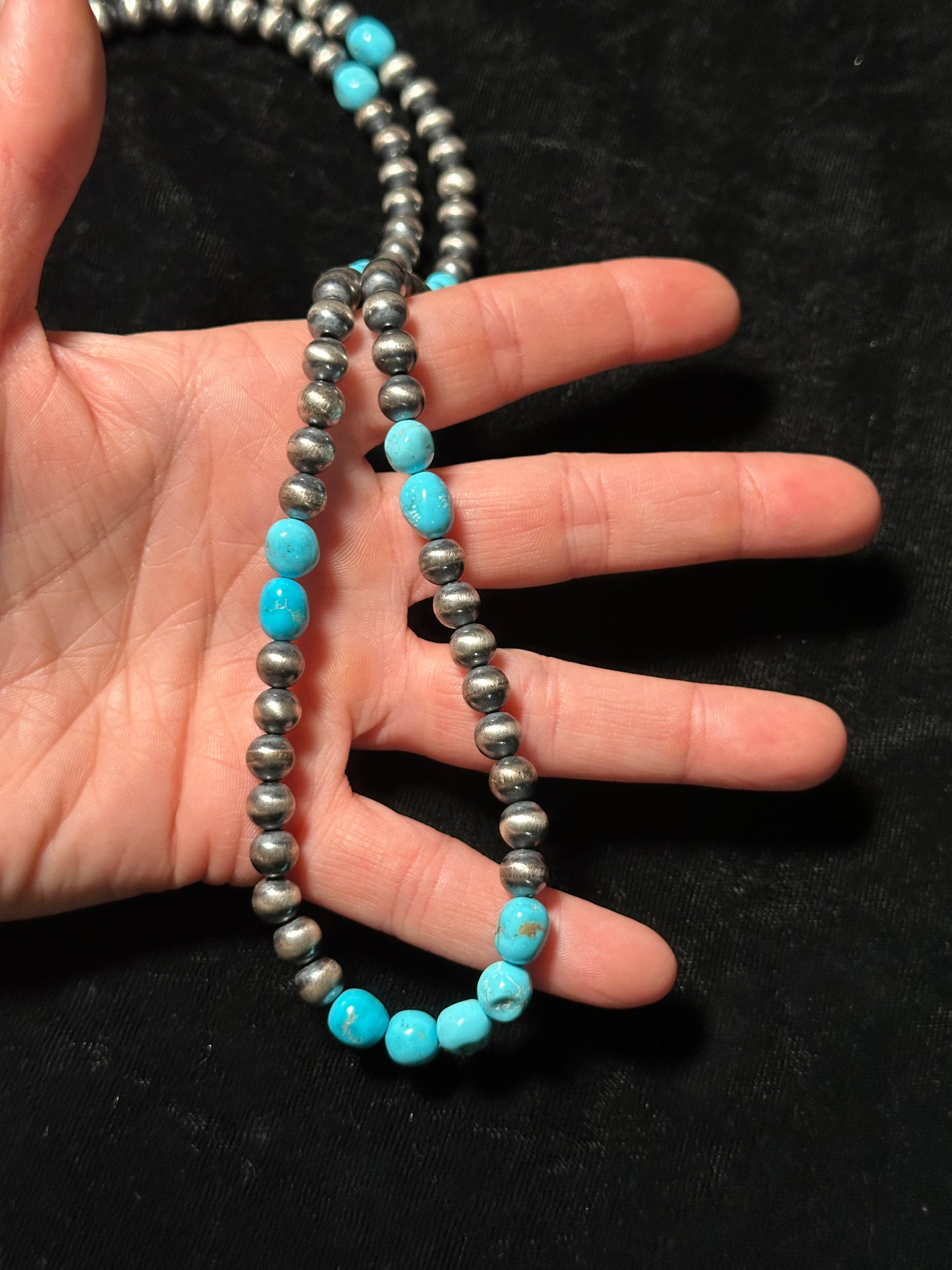 34" 7mm Navajo Pearls and Sleeping Beauty Turquoise Nugget Necklace