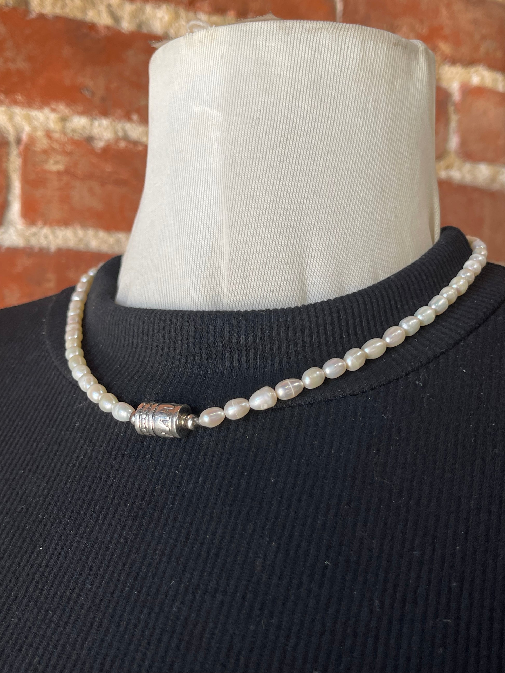 Elevate your elegance with this 17" Fresh Water Pearls Necklace, featuring lustrous pearls and a sleek barrel bead clasp. Perfect for adding a timeless touch to any outfit, it combines classic beauty with comfortable wear. Whether for daily sophistication or special occasions, this necklace enhances your style effortlessly.