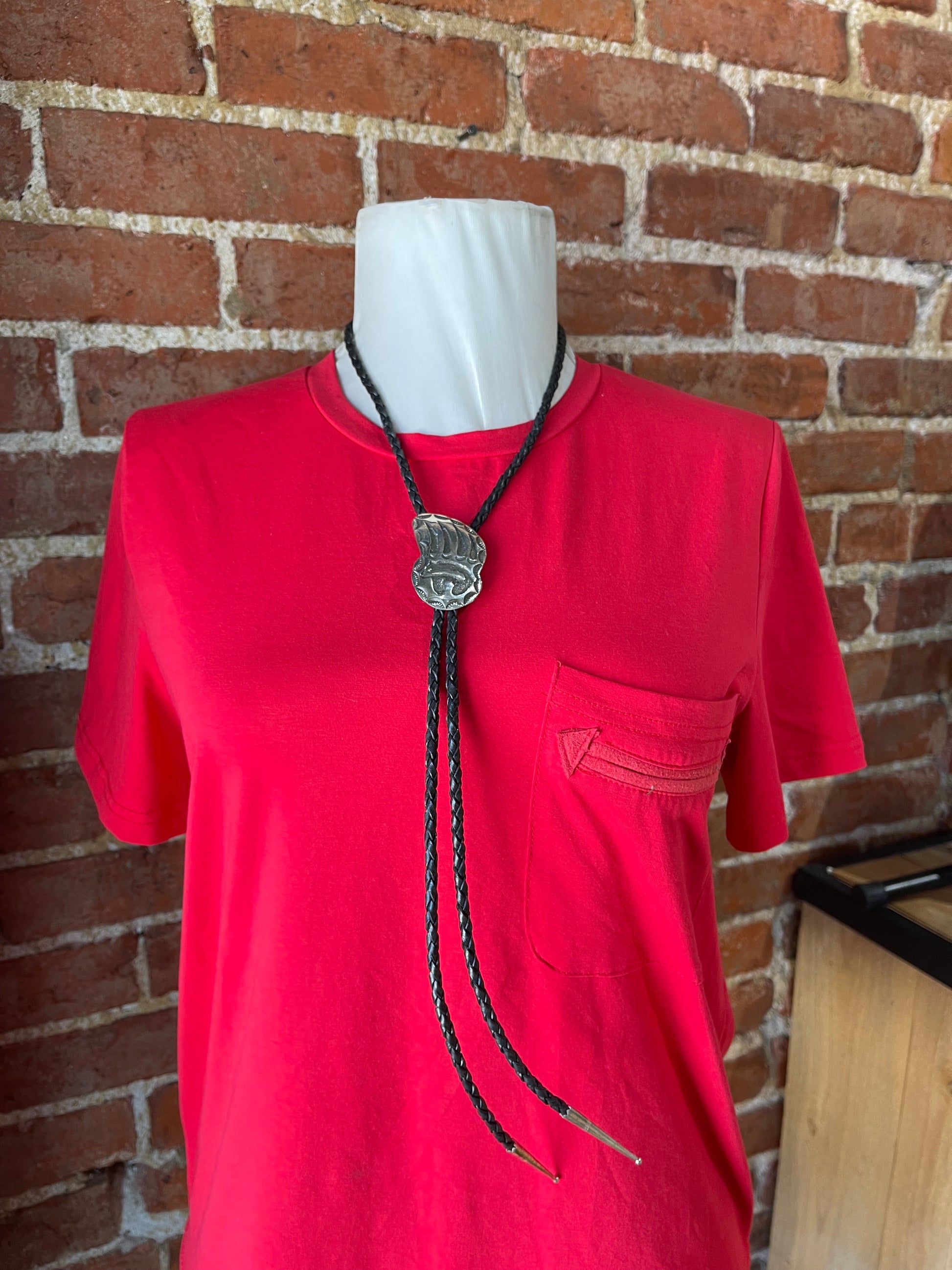 Unleash your wild side with the Sterling Silver Bear Clar Bolo Tie by Emerson Kinsel, Navajo. Made of high-quality Sterling Silver, this bolo tie features a beautiful bear design that represents strength and courage. Show off your unique style while adding a touch of Native American culture to your wardrobe.