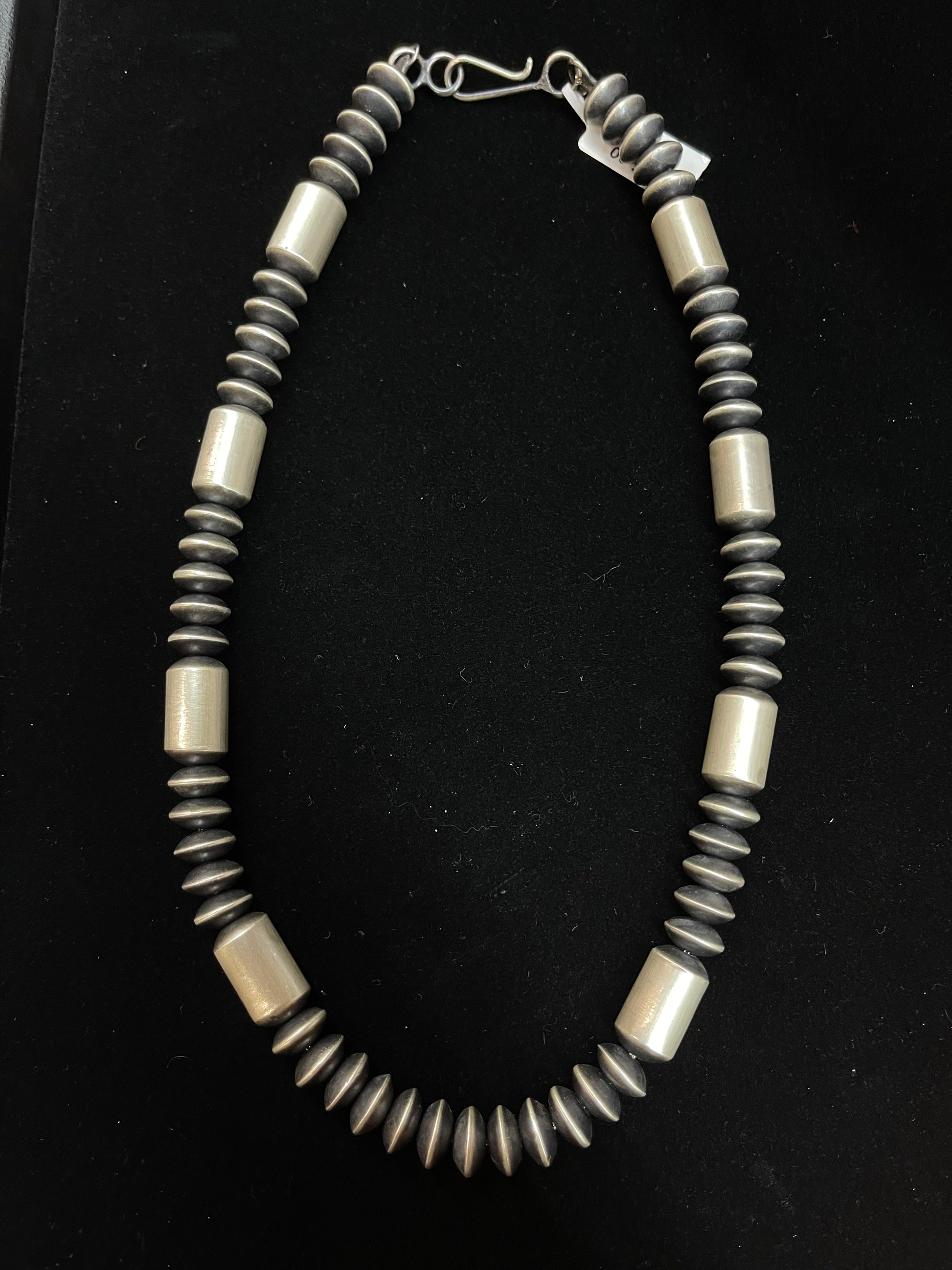 Elevate your style with our stunning 18" 10mm Disc Navajo Pearls and Barrel Beads by Tonisha Haley. Made with genuine sterling silver, these timeless pearls and beads will add a touch of elegance and sophistication to any outfit. Perfect for any occasion, these pieces will effortlessly enhance your look and make you stand out in a crowd.