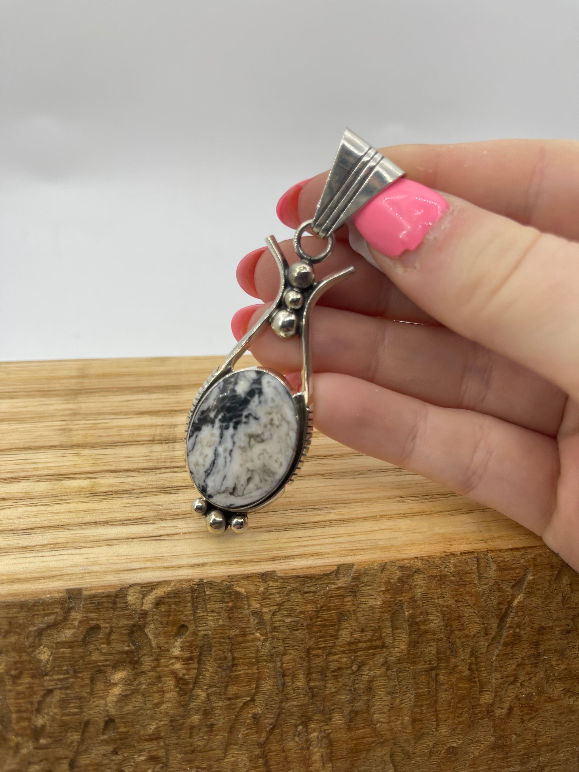 White Buffalo Pendant by Larson Chee, Navajo (Matrix Varies)