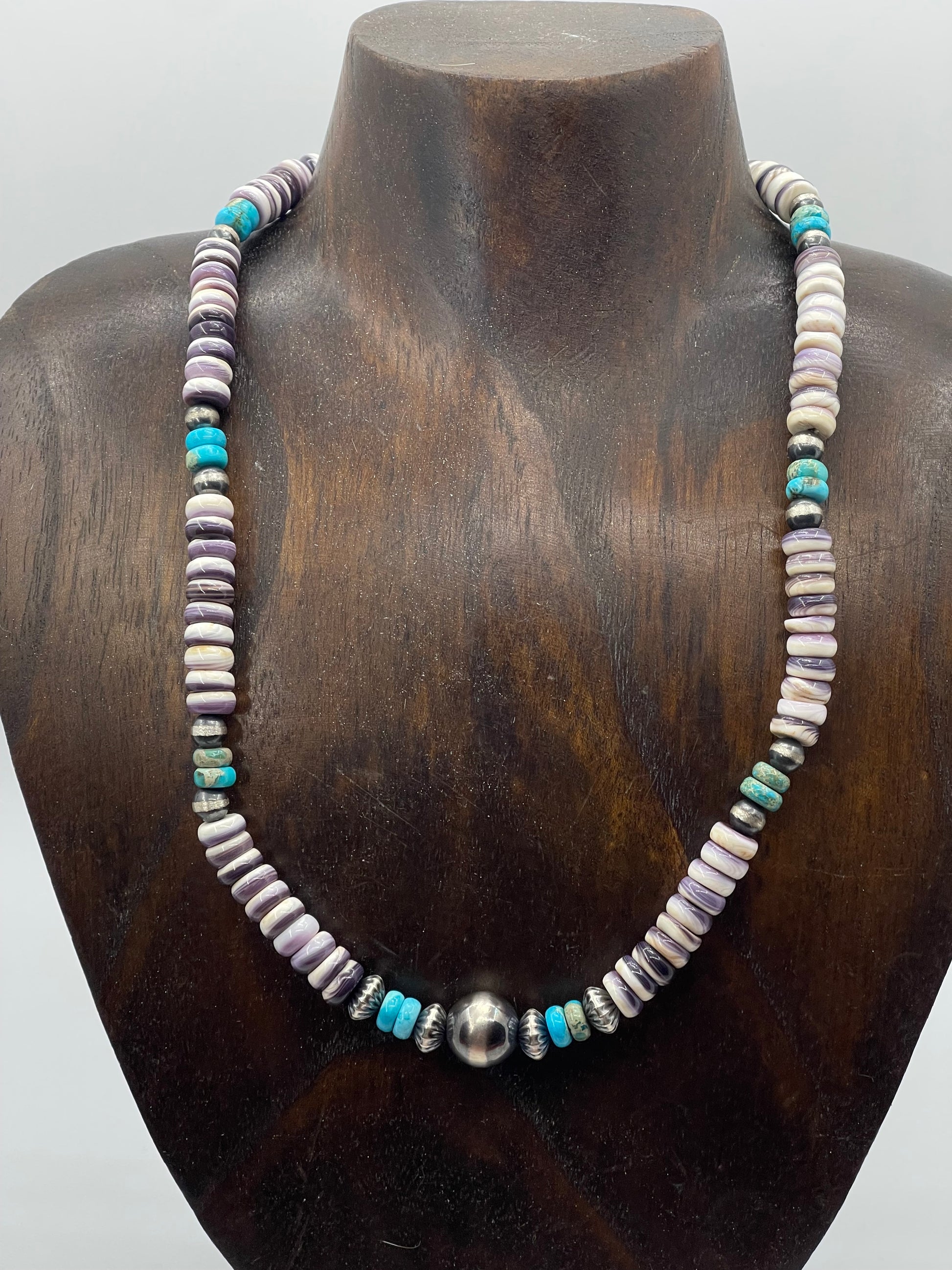 18" 12mm Wampum Shell, Turquoise, and Navajo Pearls Necklace