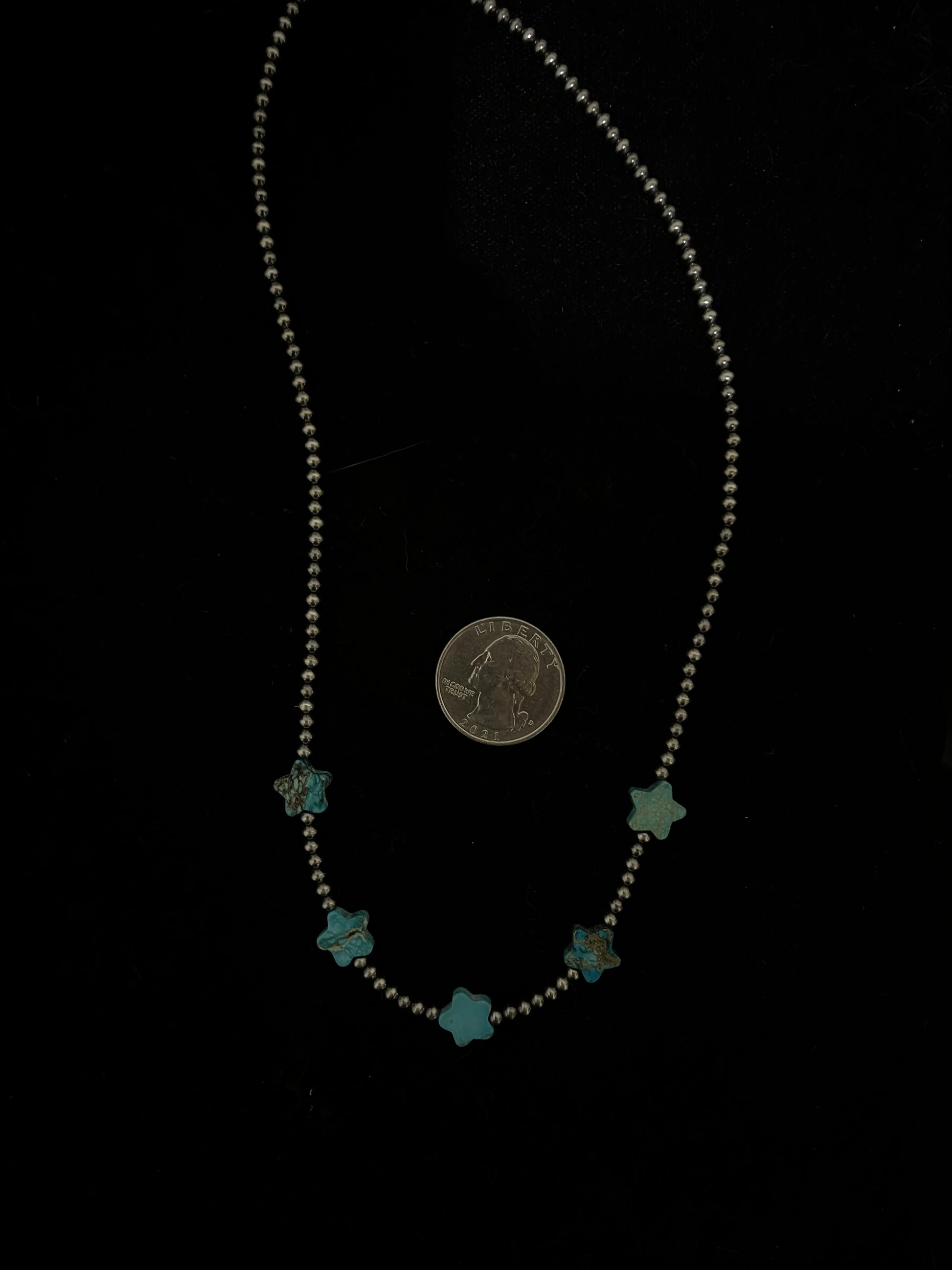 18" 3mm Navajo Pearls and Turquoise Star Necklace