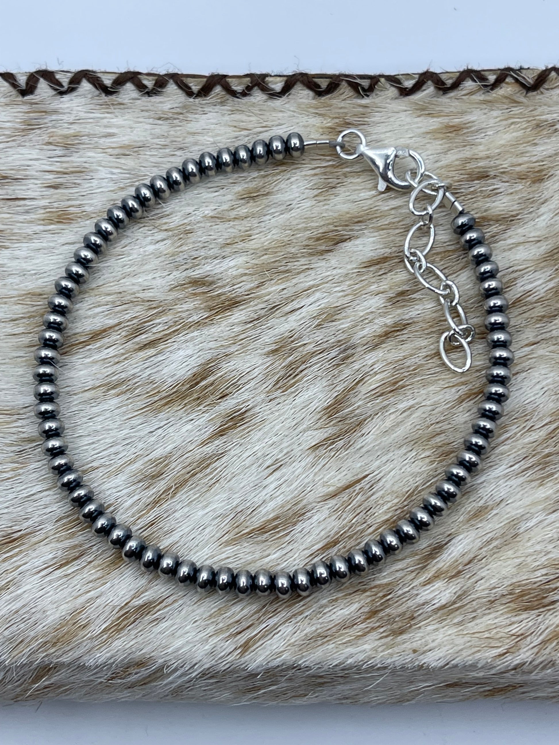 Elevate your style with this authentic 9" + 1.5" extension 4mm Rondelle Navajo Pearl Anklet, handcrafted by skilled Navajo artisans. The natural rondelle pearls offer a delicate yet striking shine that complements any outfit, while the adjustable length ensures a perfect fit. Celebrate timeless craftsmanship and add a unique, elegant touch to your jewelry collection.