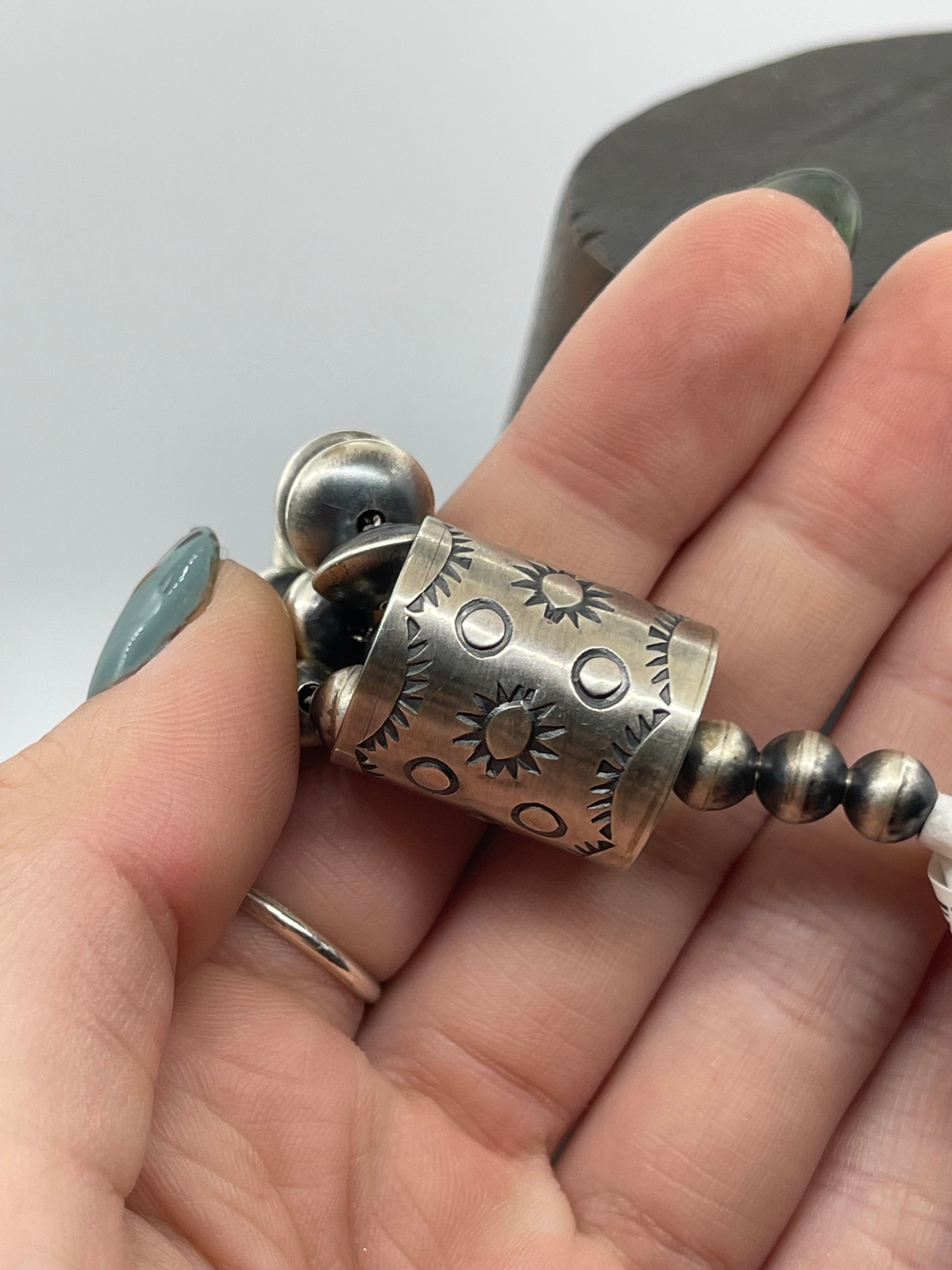 Elevate your style with this exquisite 20" Handmade 3 Strand Navajo Pearls Necklace by Bryannnen Halwood. Meticulously crafted by a skilled Navajo artisan, each pearl showcases authentic Southwestern heritage. The triple strands create a bold yet elegant statement, perfect for enhancing both casual and formal looks with timeless charm. Experience the unique beauty and cultural significance woven into every detail of this stunning necklace.