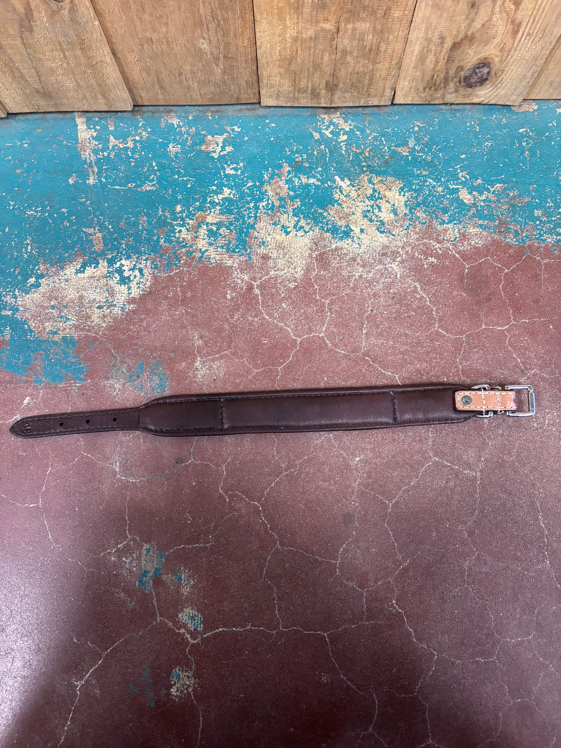 This striking dog collar combines rustic Western charm with vibrant artisan craftsmanship. Handcrafted from rich brown leather, it features intricate tooling work showcasing a bold black and white cowhide at center. Measuring 19 inches long and 2 inches tall, it offers substantial presence while maintaining comfort for your furry companion. Perfect for pet owners who appreciate authentic leather goods and distinctive style, this collar transforms everyday walks into a fashion statement that celebrates Southwestern flair.