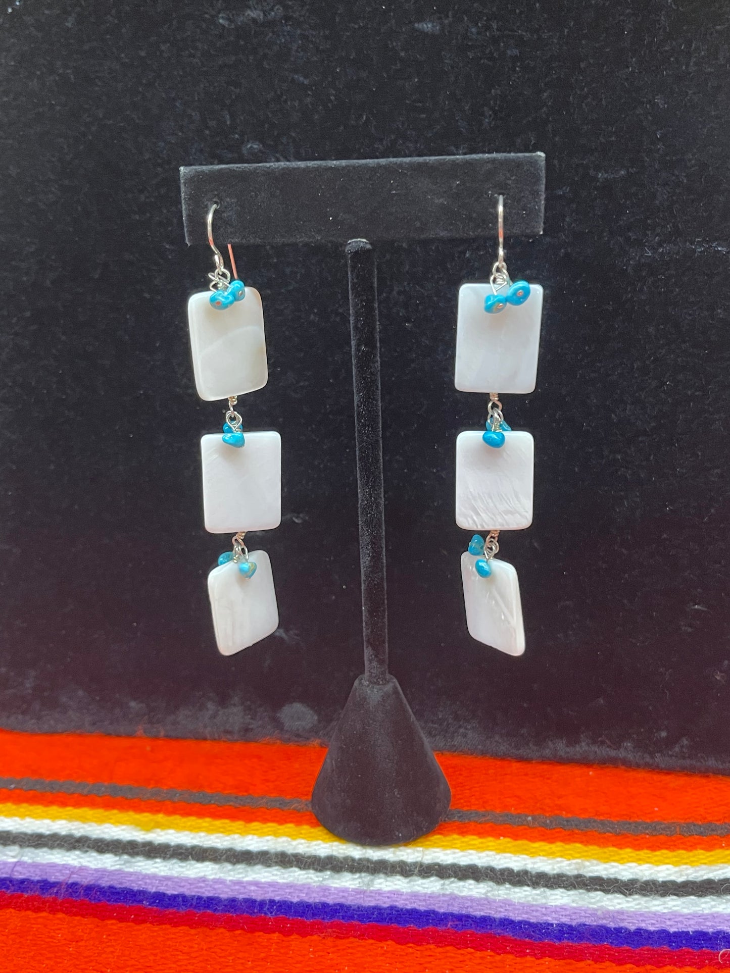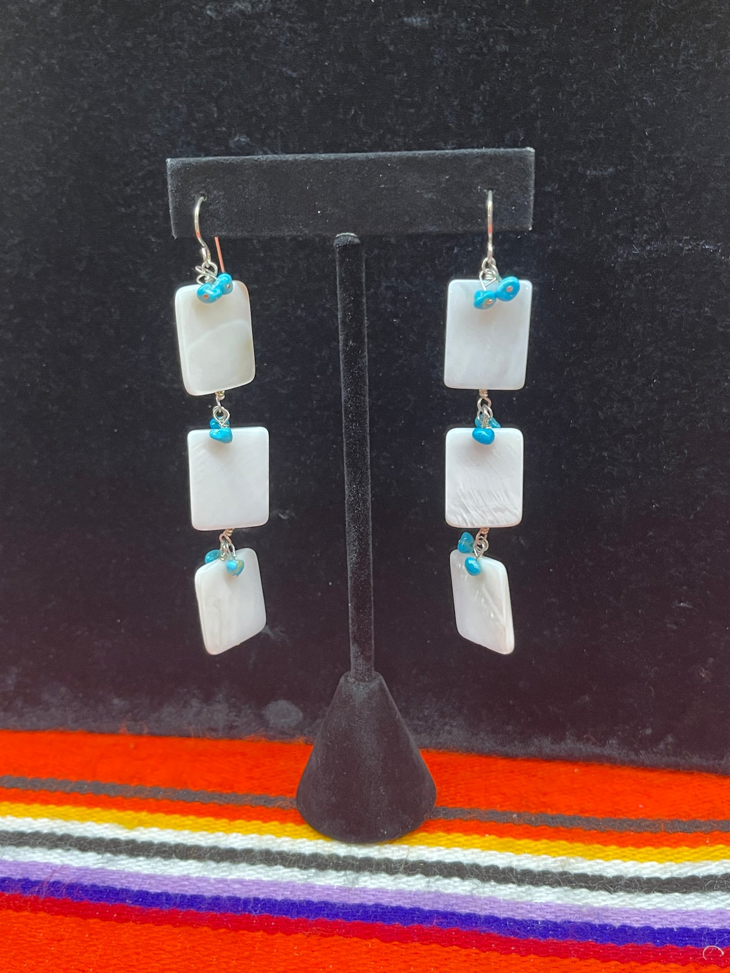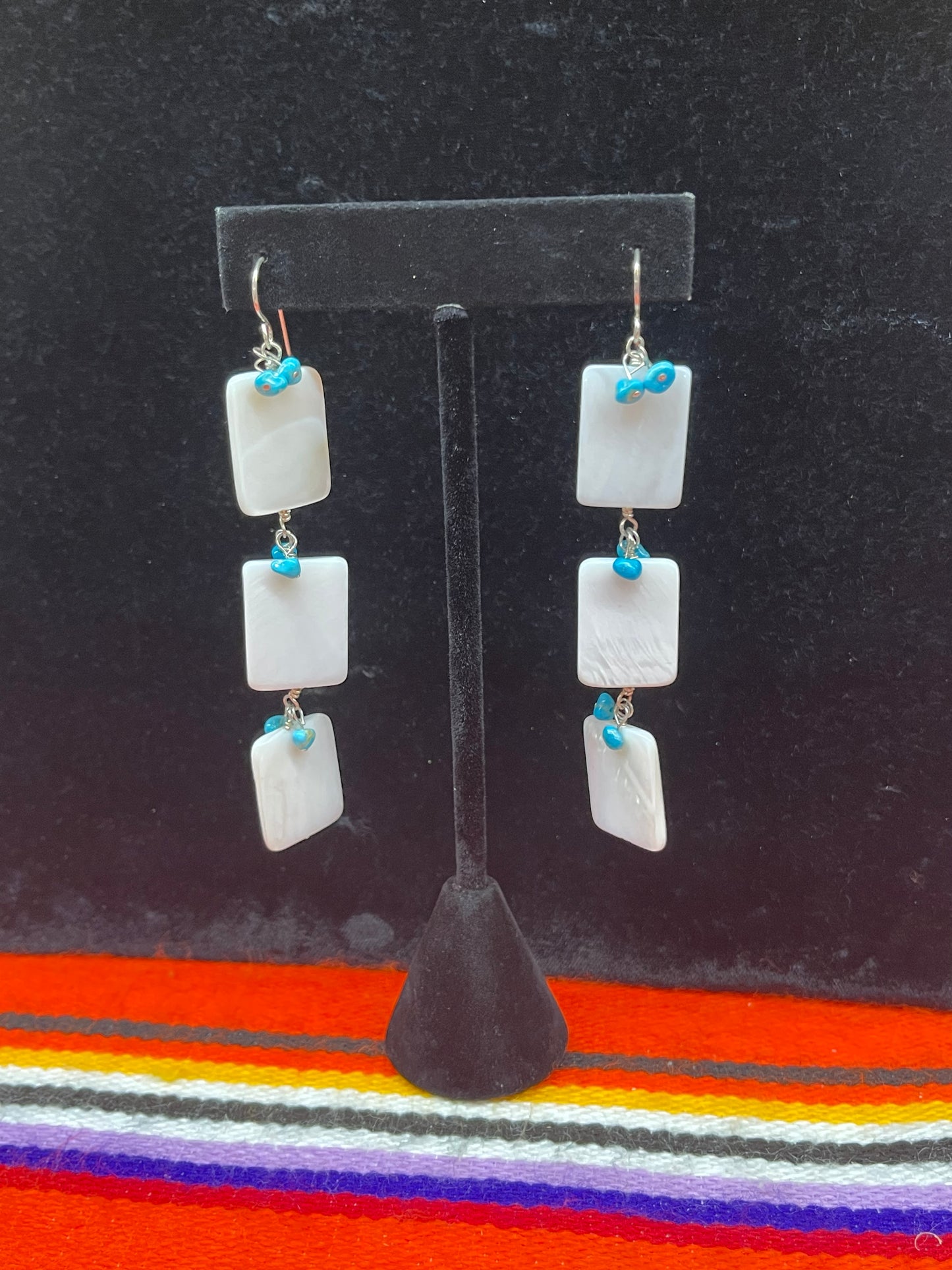 Mother of Pearl with Tiny Turquoise Nuggets Earrings