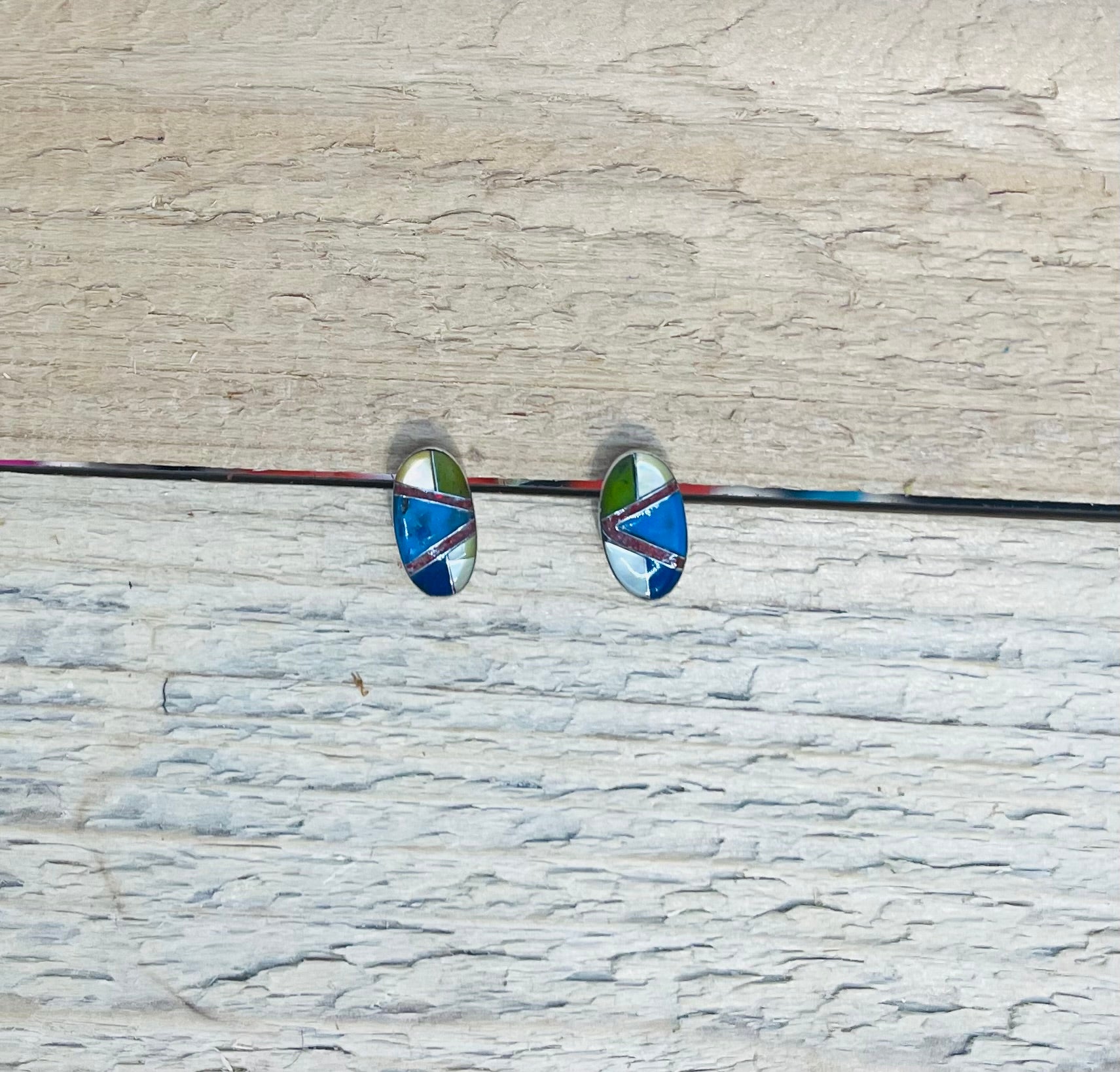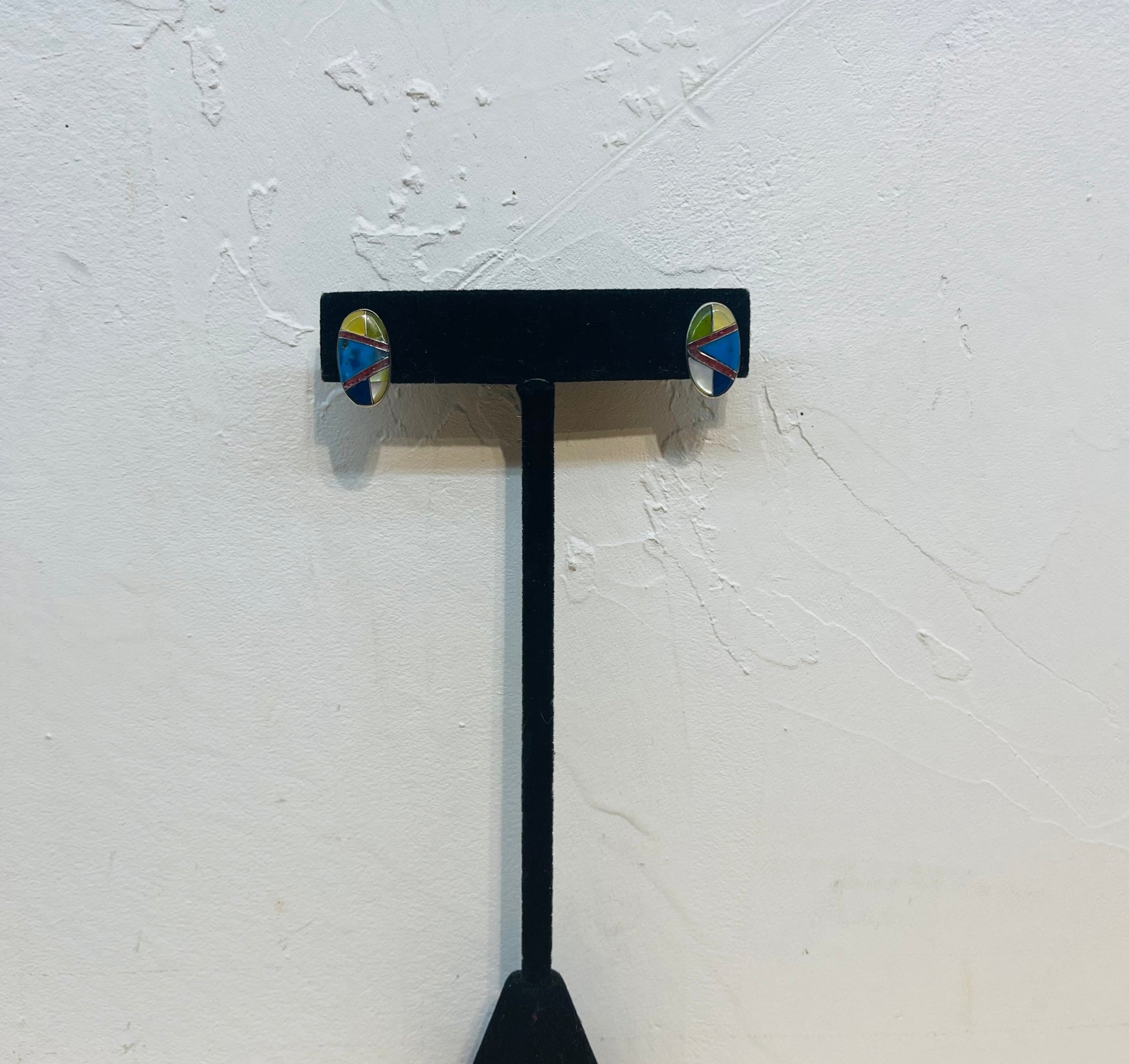 Oval Multistone Inlay Post Earrings