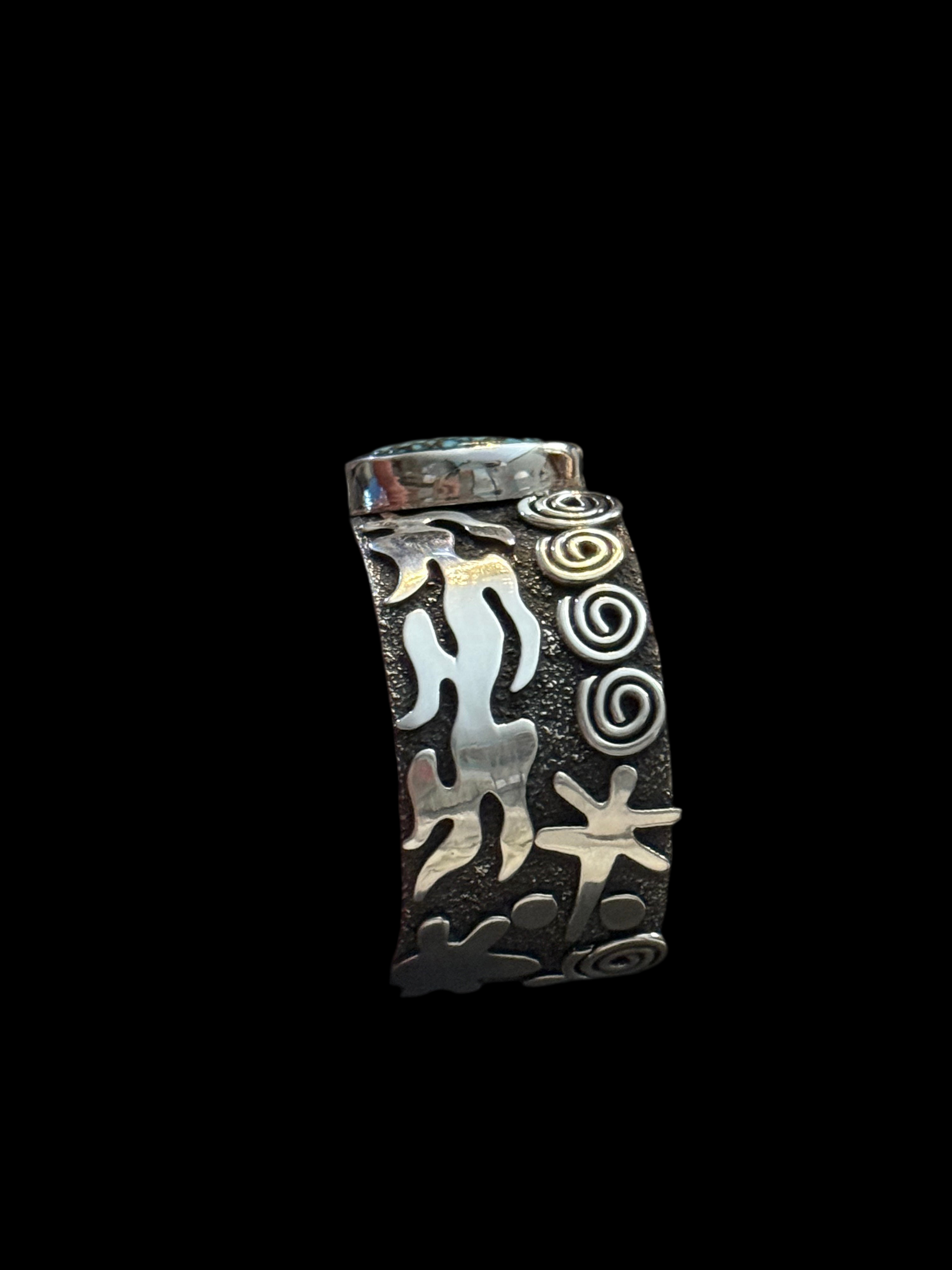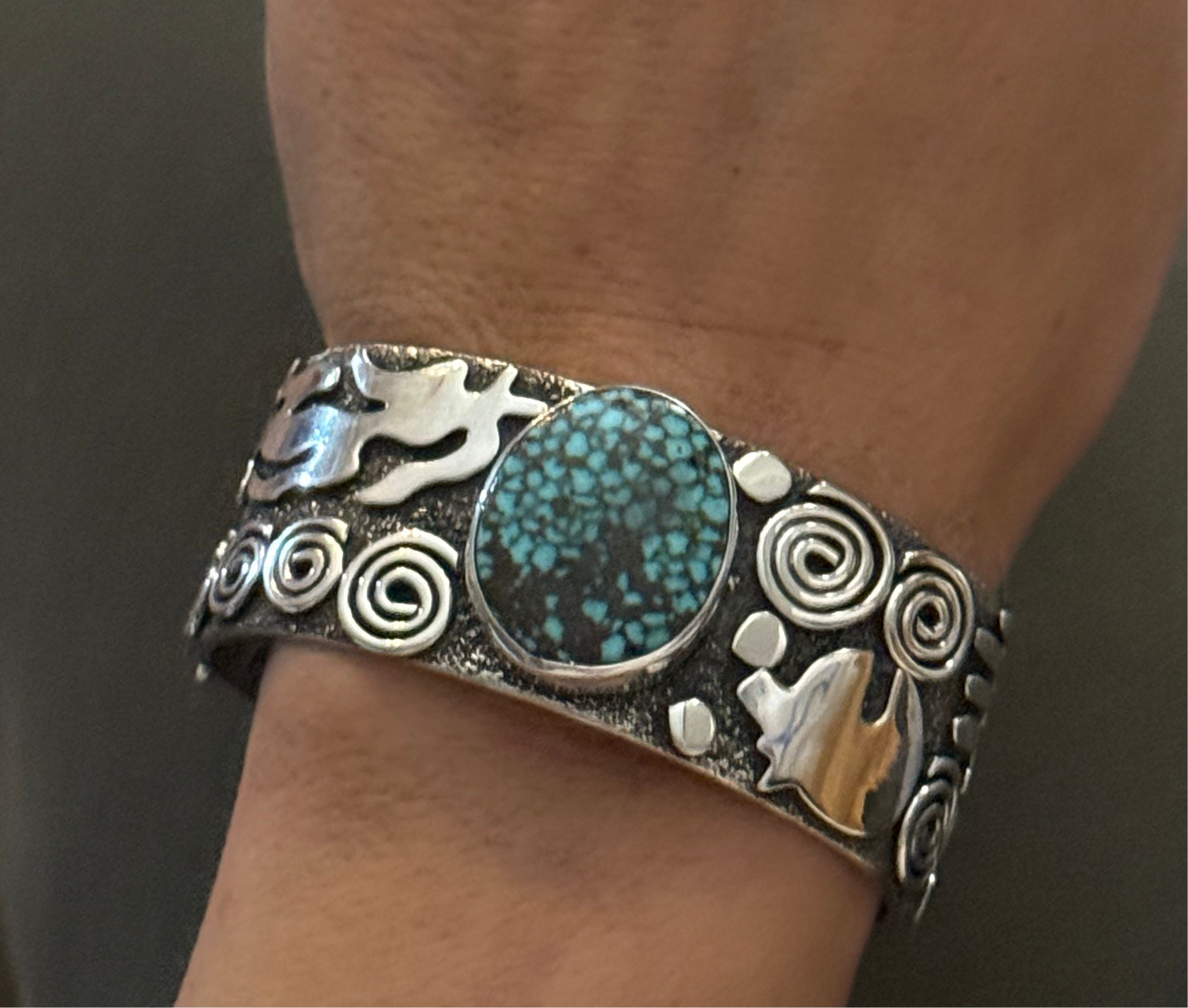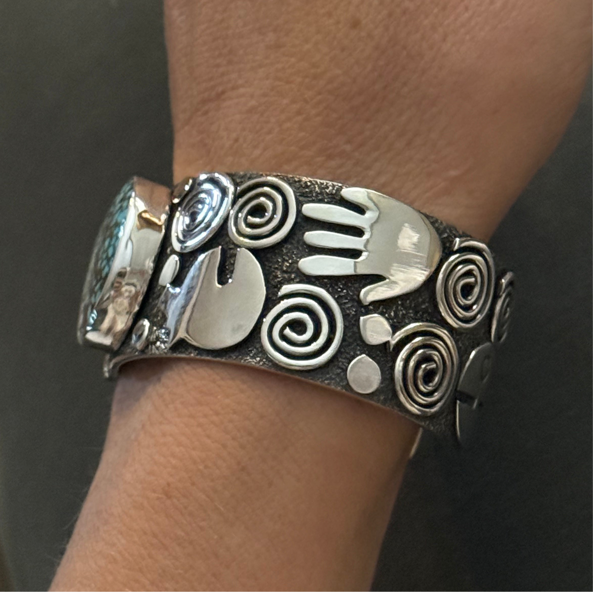 Petroglyph Cuff with Kingman Web Turquoise by Alex Sanchez, Navajo (medium width)