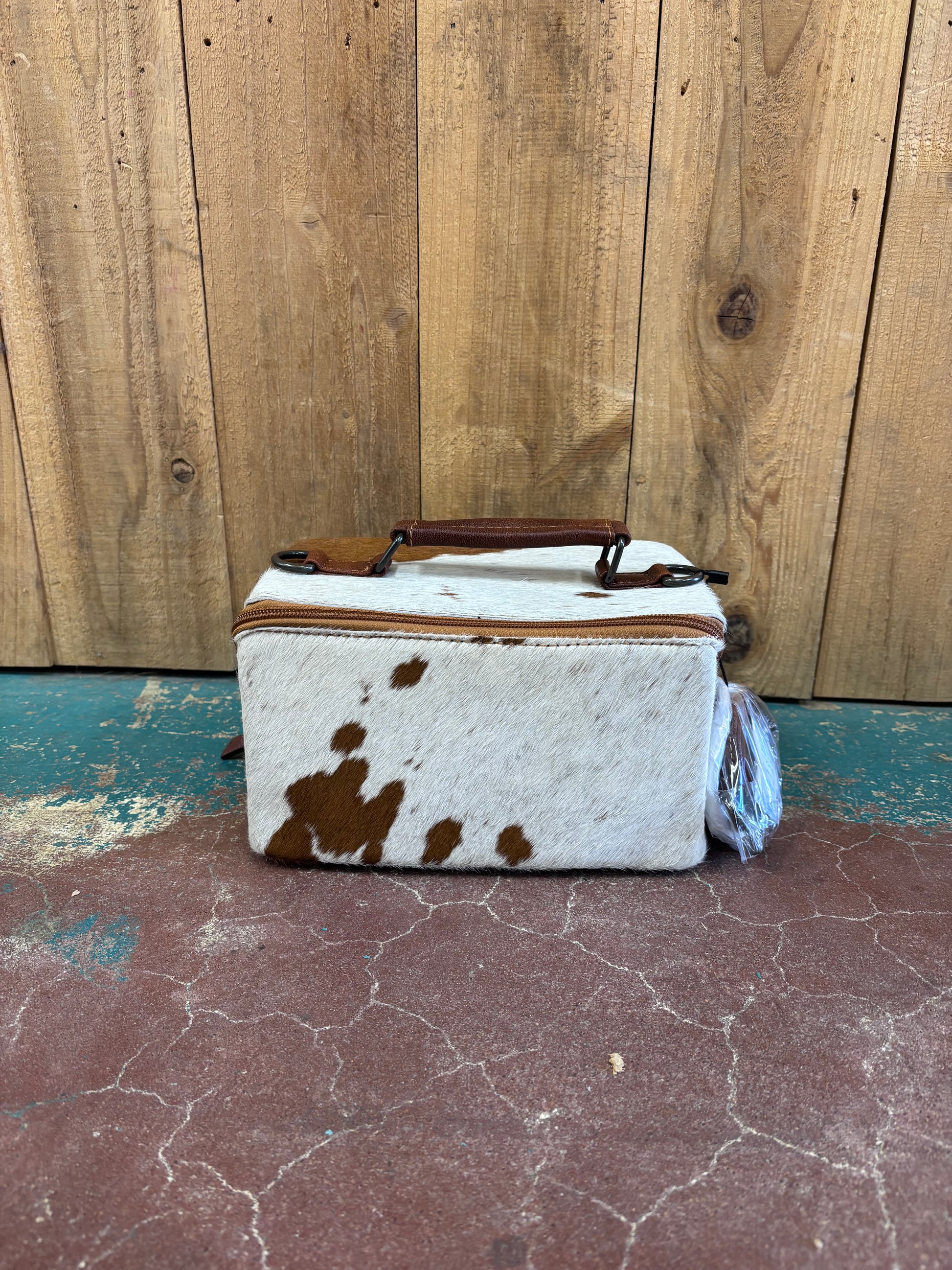 Carry style and function in one stunning piece. This rectangular cowhide purse measures 5 inches tall by 9 inches wide, offering the perfect compact size for everyday essentials. The innovative middle sipping pocket divides the bag into two organized sections, while interior side pockets on both sides keep smaller items secure and accessible. Crafted from genuine cowhide, this versatile purse combines durability with timeless appeal—the ideal accessory for anyone who refuses to compromise on quality or organization.