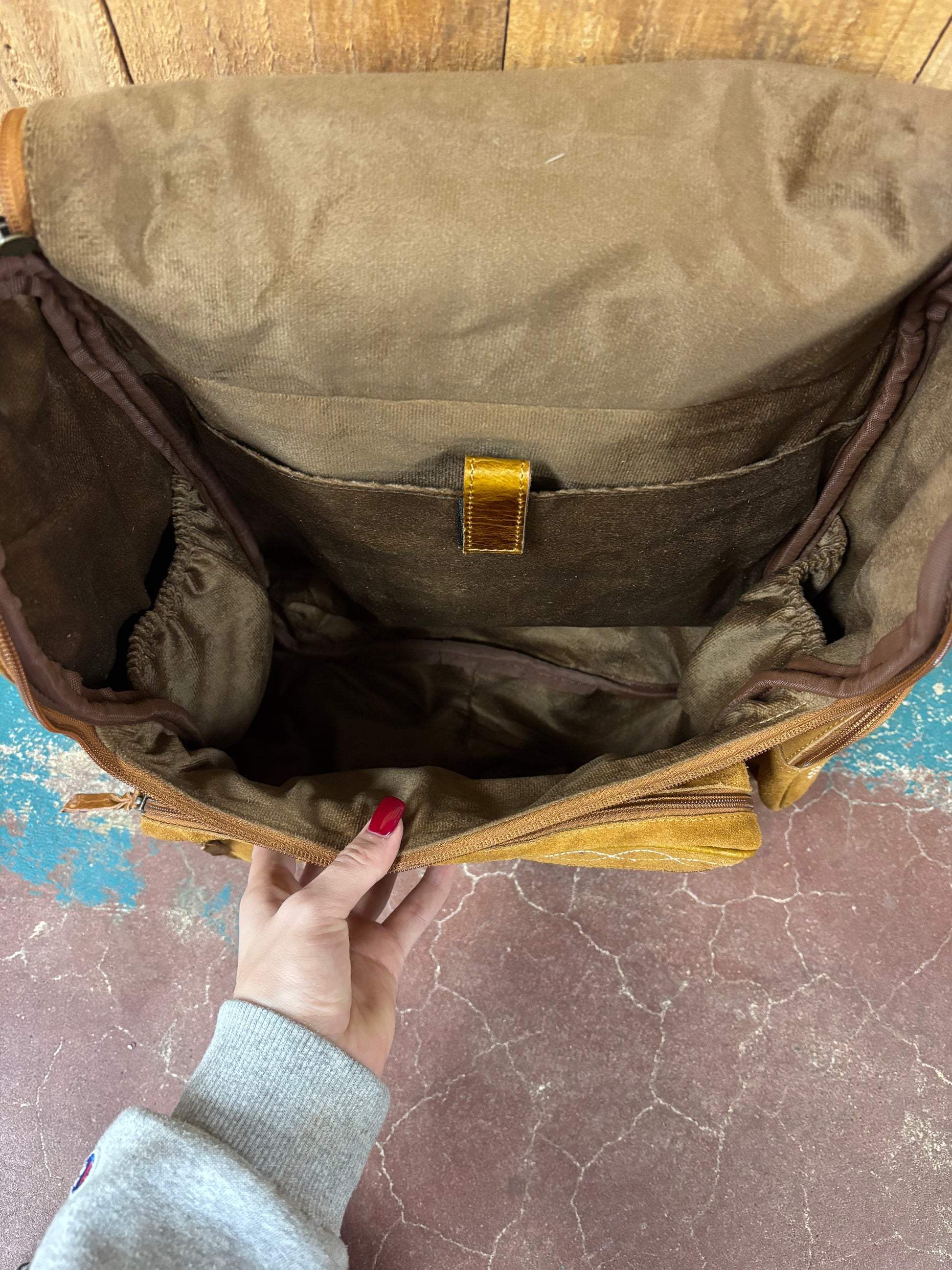 Tan Suede Leather Boot Stitched Backpack