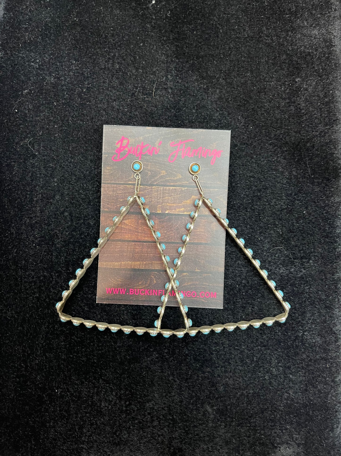 Elevate your style with these stunning Sleeping Beauty Turquoise Triangle Dangle Earrings by Zuni. Crafted with beautiful turquoise stones, these 2" long earrings add a touch of elegance to any outfit. The perfect addition to your jewelry collection, these earrings are sure to make a statement.
