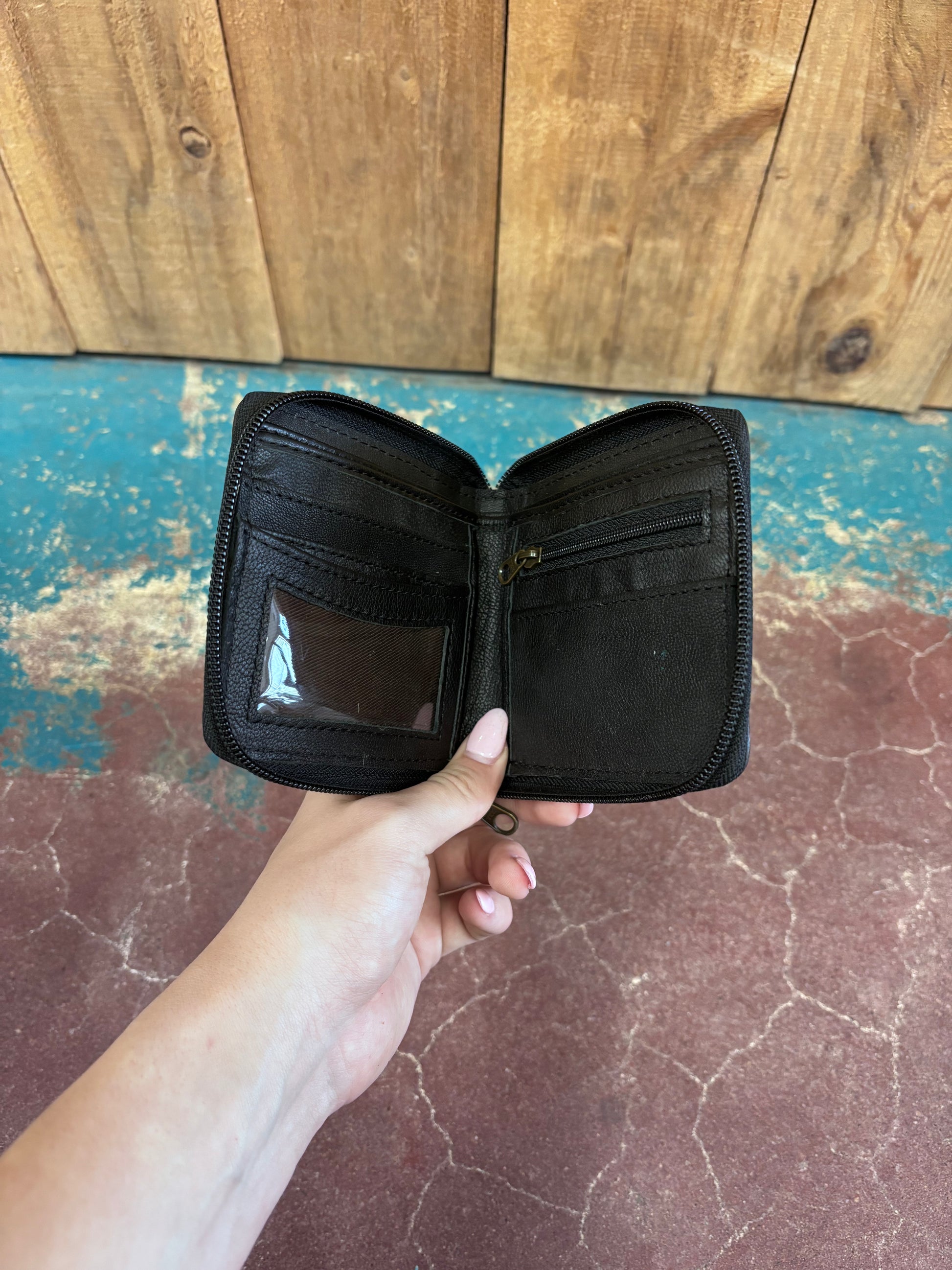 Carry everything you need in one stylish accessory. This turquoise and white checkered wristlet features durable buck stitching along the edges and measures 5 inches tall by 4 inches wide—the perfect size for on-the-go essentials. Multiple card slots and a dedicated coin pocket keep your cards, cash, and change organized, while the dual wrist strap option lets you wear it attached or detached based on your mood. Quality leather construction meets eye-catching pattern for a wallet that's as functional as it is fashionable.