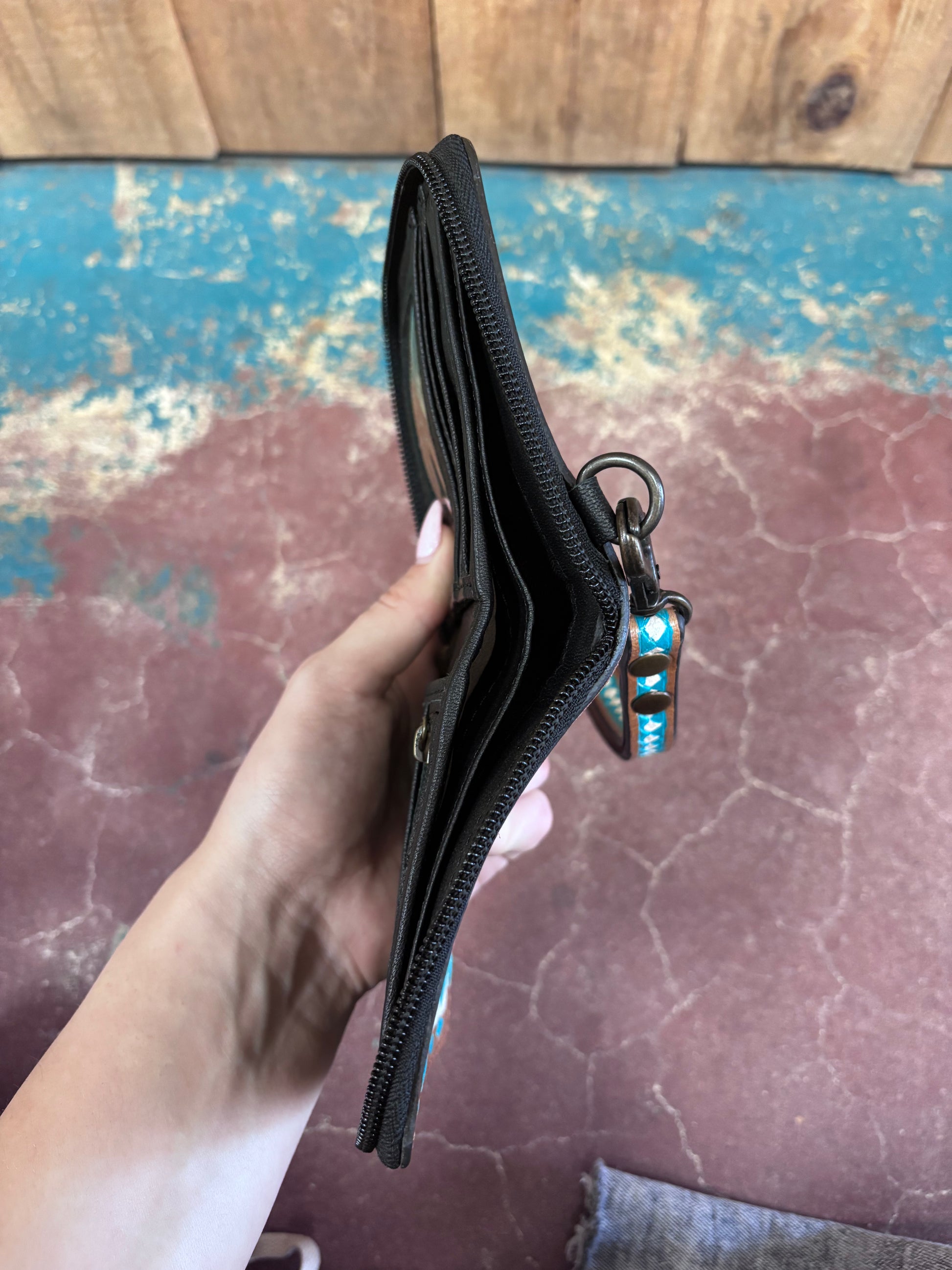 Turquoise and White Checkered Leather Wristlet/Wallet