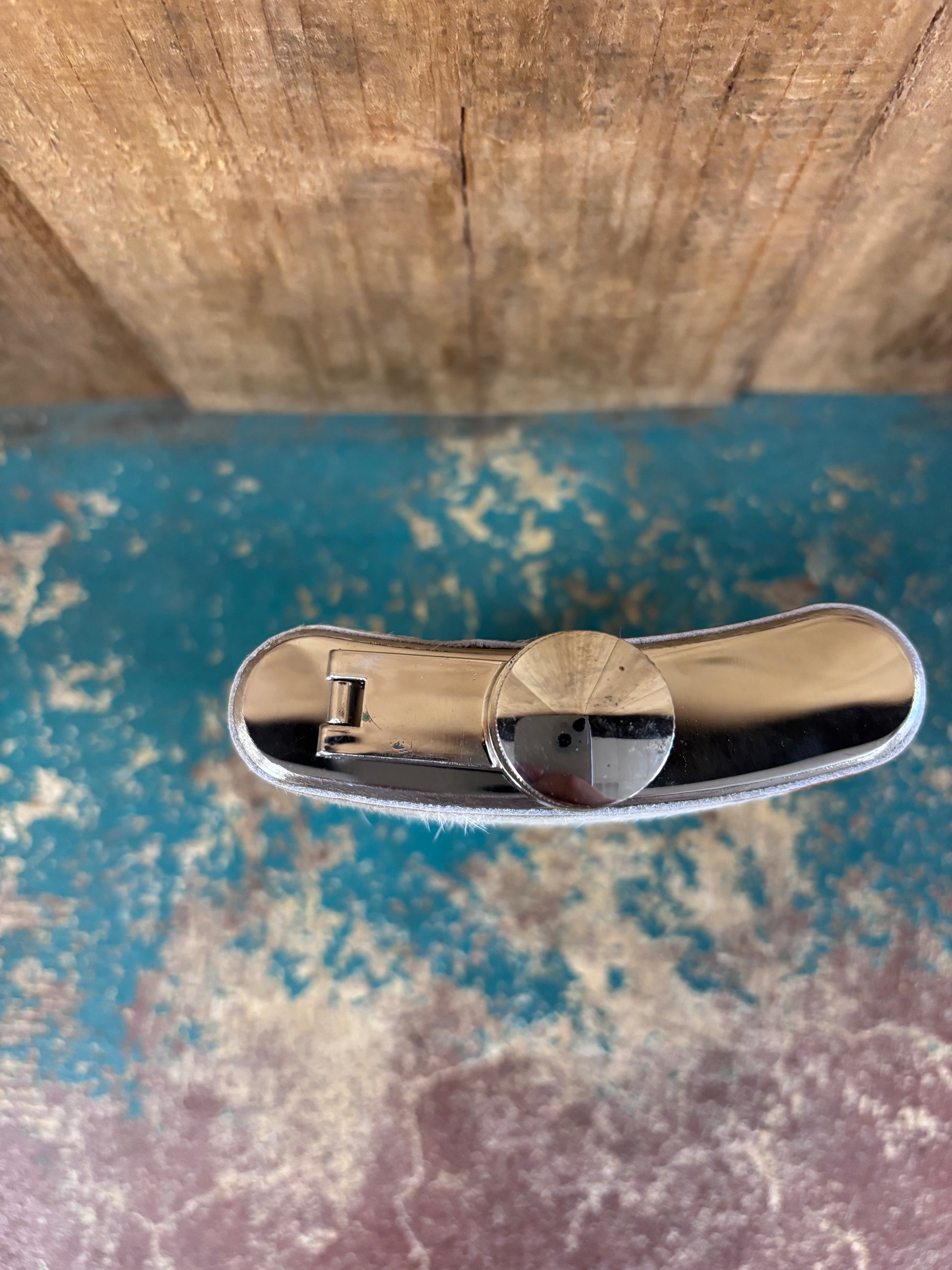 Rustic charm meets practical design in this distinctive flask. Wrapped entirely in authentic brown and white cowhide, it stands 5 inches tall and 4 inches wide, it's the perfect size for your pocket or pack. The secure screw-on lid keeps your beverage sealed and ready for any adventure. Whether you're heading to the ranch, the road, or a night out, this cowhide flask brings Western flair and reliable functionality to every occasion.